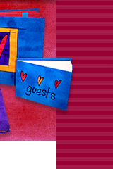 I can also custom make wedding invitations and thank you cards. Each book has been painted, folded, sewn and glued by hand. Covers are made with book binding cloth (canvas) and hand painted with non-fade inks then coated in a water-based (but not water proof) sealer. Black covers are made from commercially dyed black canvas and are water proof. Each hand painted cover is a one-off and will vary from the sample covers shown here. Wedding albums are bolted not folded and sewn. I recommend that photos are stuck in with double sided sticky acid-free archival mounts – these go on the back of each corner of each photo. Available from me for $5 (box of 500) or your local photo shpp. |